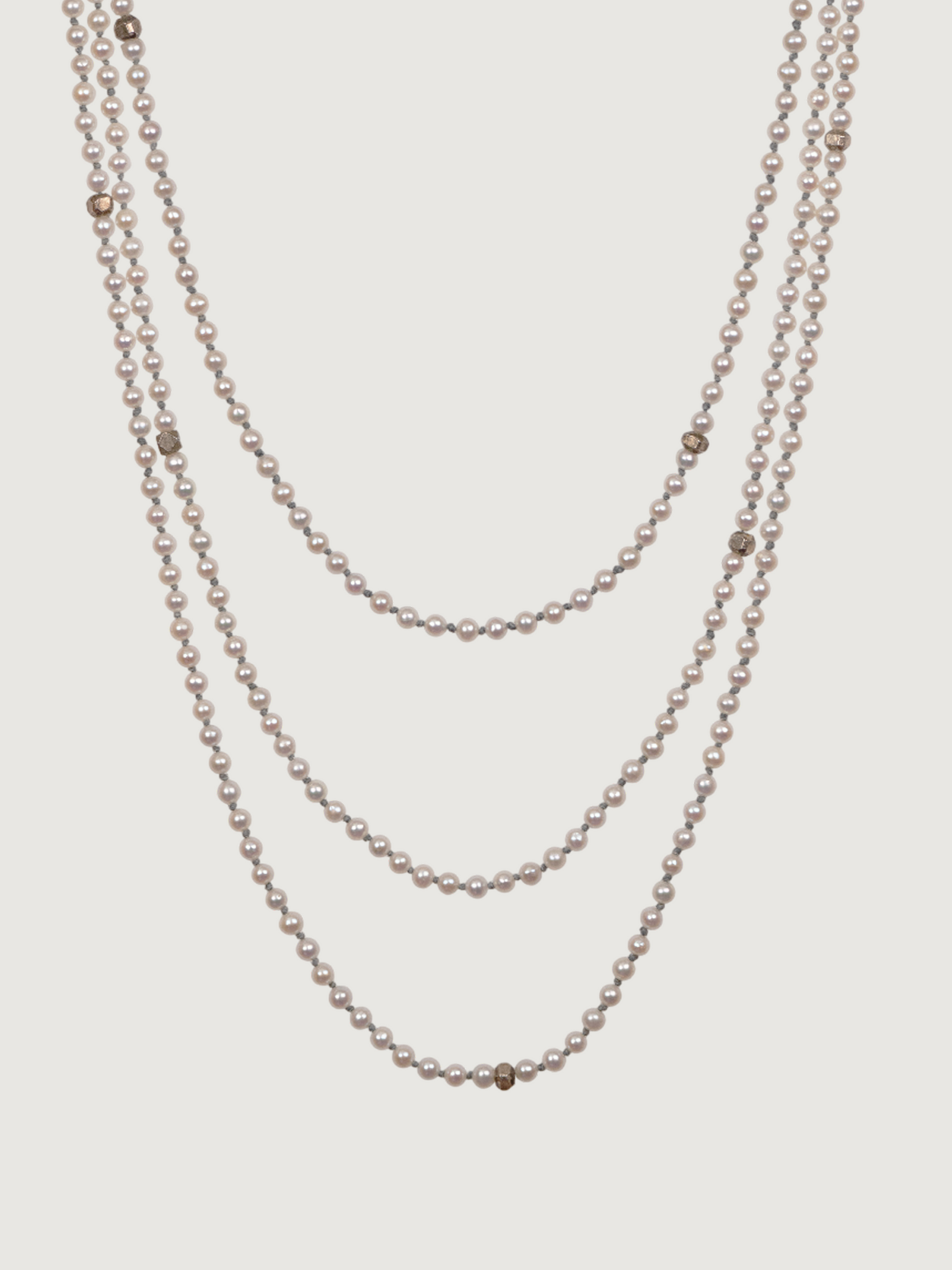 You don’t need to experience Jnana (spiritual knowledge) to know that divine love is the most powerful force in the universe. Open your self to Jnana on the path of insight into the true nature of reality. Crafted using round and lustrous AAAA quality 3-4mm freshwater pearls, a lightweight and uncommon size, creating an understated and sophisticated appearance. Wear it wrapped or unwrapped to showcase timeless elegance, or layer it with other V.O.C. necklaces for a powerful aesthetic. Hand-knotted with love in our studio. Detailed with gemstones or pure silver geometric beads, and an in-house crafted pure silver V.O.C. tag. Each necklace is a one-of-a-kind original work of art.